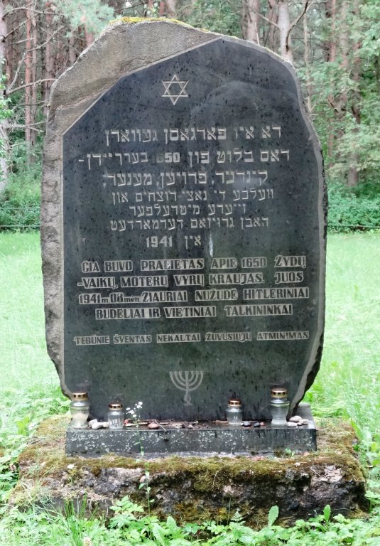 Am südlichen Ortsausgang von Girkalis nimmt man links die Abzweigung nach Parmedžiava (6 km). Man fährt eine Schotterstraße ca. 2,5 km bergauf bis zu einem schwarzen Markstein (250 m) und folgt diesem im spitzen Winkel rechts in den Wald bis zu einem Gedenkstein mit der Inschrift in Jiddisch und Litauisch: „Hier wurde im August 1941 das Blut von ungefähr 1650 Juden – Kinder, Frauen und Männern vergossen, brutal ermordet von Hitlers Exekutoren und ihren örtlichen Helfern. Möge ihr Blut geheiligt bleiben.“