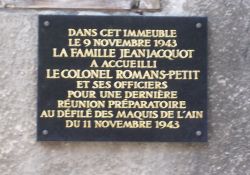 Trotz eines Vichy-Verbots marschierten am 11. November 1943 auf Vorschlag von Henri Romans-Petit, dem Résistance-Chef des Ain und Jura, etwa 120 Maquisards der Region durch Oyonnax. Sie legten einen Kranz am (alten) Totendenkmal nieder mit der Aufschrift: „Die Sieger von morgen für die Sieger von 1914-1918“. Ziel war, die Präsenz der Résistance zu demonstrieren und der Vichy-Propaganda von den „Terroristen“ entgegenzutreten. Ein Teilnehmer sagte: „Es war eine schlicht bewegende Zeremonie – wegen des Symbols der 'Sieger von morgen….' Die ganze Bitterkeit unserer Niederlage verflog angesichts dieser Geste der Hoffnung.“ Vgl. auch (Original-)Filmaufnahmen: https://www.youtube.com/watch?v=cFIx1fb4zkA .