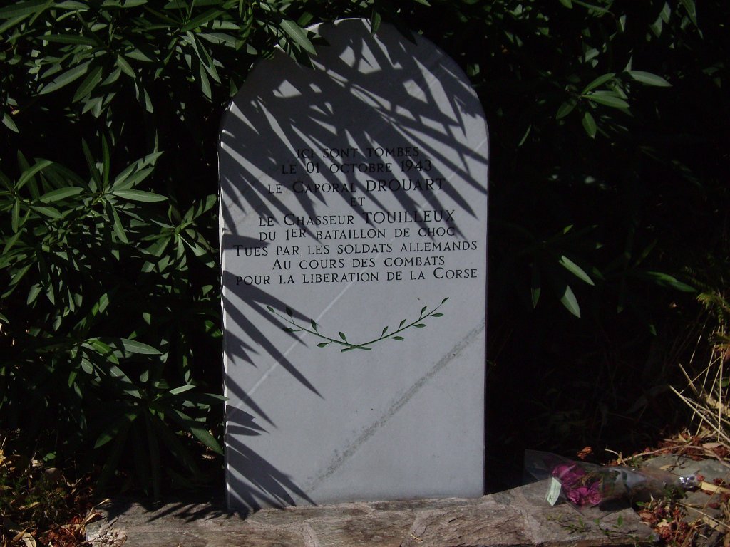Eine Stele gedenkt der zwei von den Deutschen getöteten Soldaten des Stoßbataillons, Drouart und Touilleux, „gefallen in den Kämpfen für die Befreiung von Korsika“. Sie befindet sich am Abzweig der D 132 Richtung Cagnano von der Küstenstraße D 80, kurz nach Marine de Porticciolo.