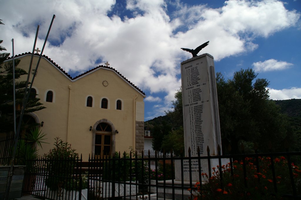 An der Gedenkstätte vor der Kirche von Kamares sind als Opfer der deutschen Besatzung 29 Namen aufgeführt.